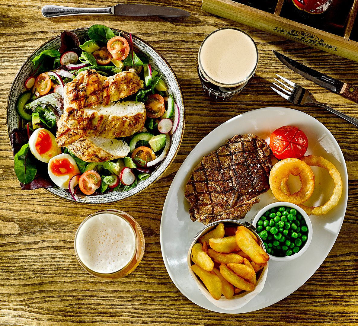 Pull up a chair with our new Spring dishes in Rochdale. Proper tasty pub grub for warm days and cold pints with friends and family. Made for pairing with our Manchester-made beers, our spring and summer dishes include new seasonal salads, fish dishes, succulent grills and more. Not forgetting your pub favourites like our legendary cheese & onion pie, John Willie’s beer battered fish and the iconic Brewery tower burger (none are bigger).